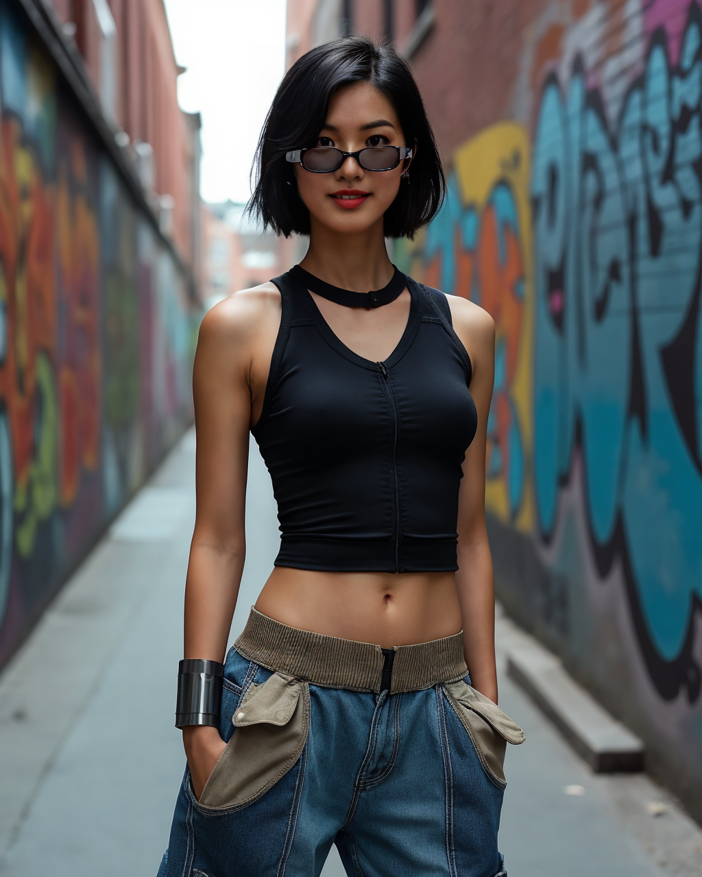 - Bold Sunglasses: Oversized and angular frames add instant edge to minimal black tops.