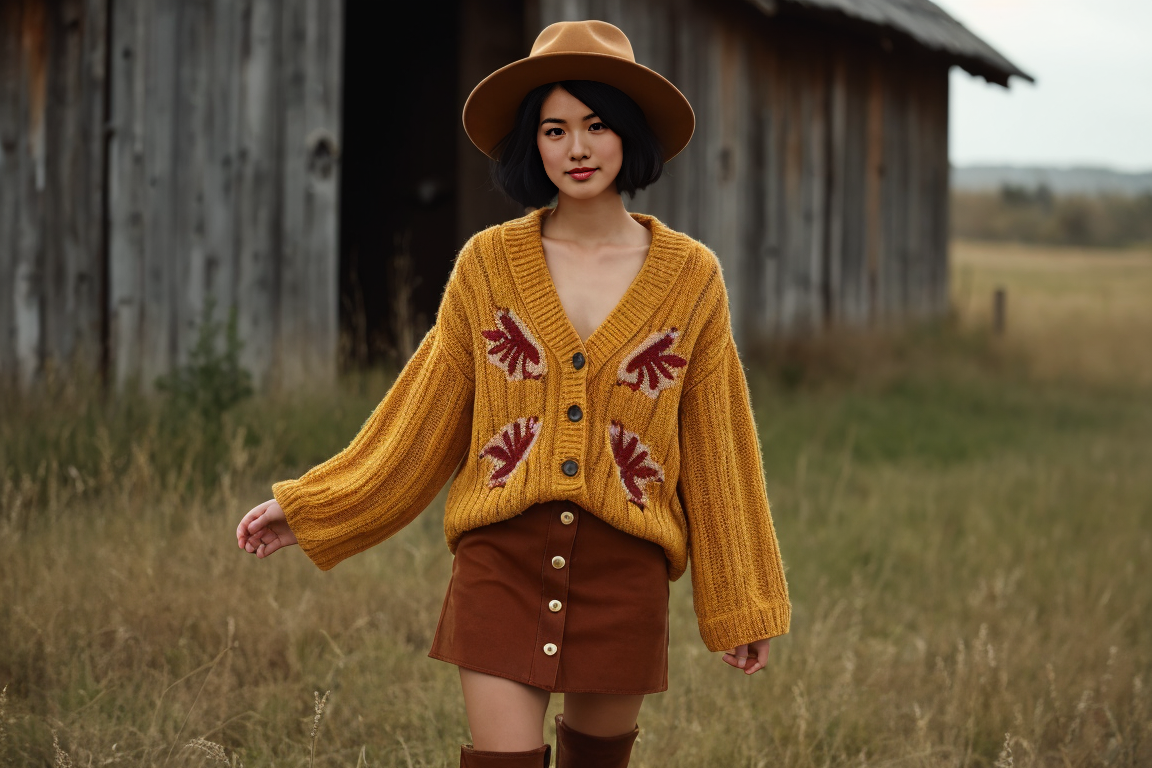 - Outer Layer: Consider a cropped suede jacket, quilted vest, or a chunky knit cardigan — all great at providing structure and shielding from unexpected breezes.
