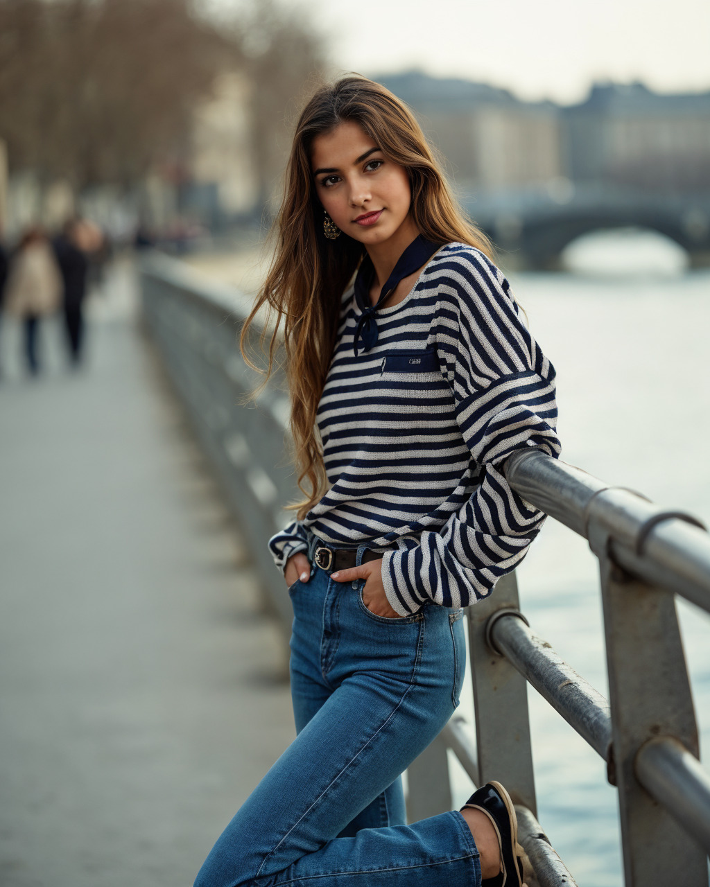 - Saturday: Breton knit, cropped flares, mesh ballet flats, silk scarf. (See Image 4)