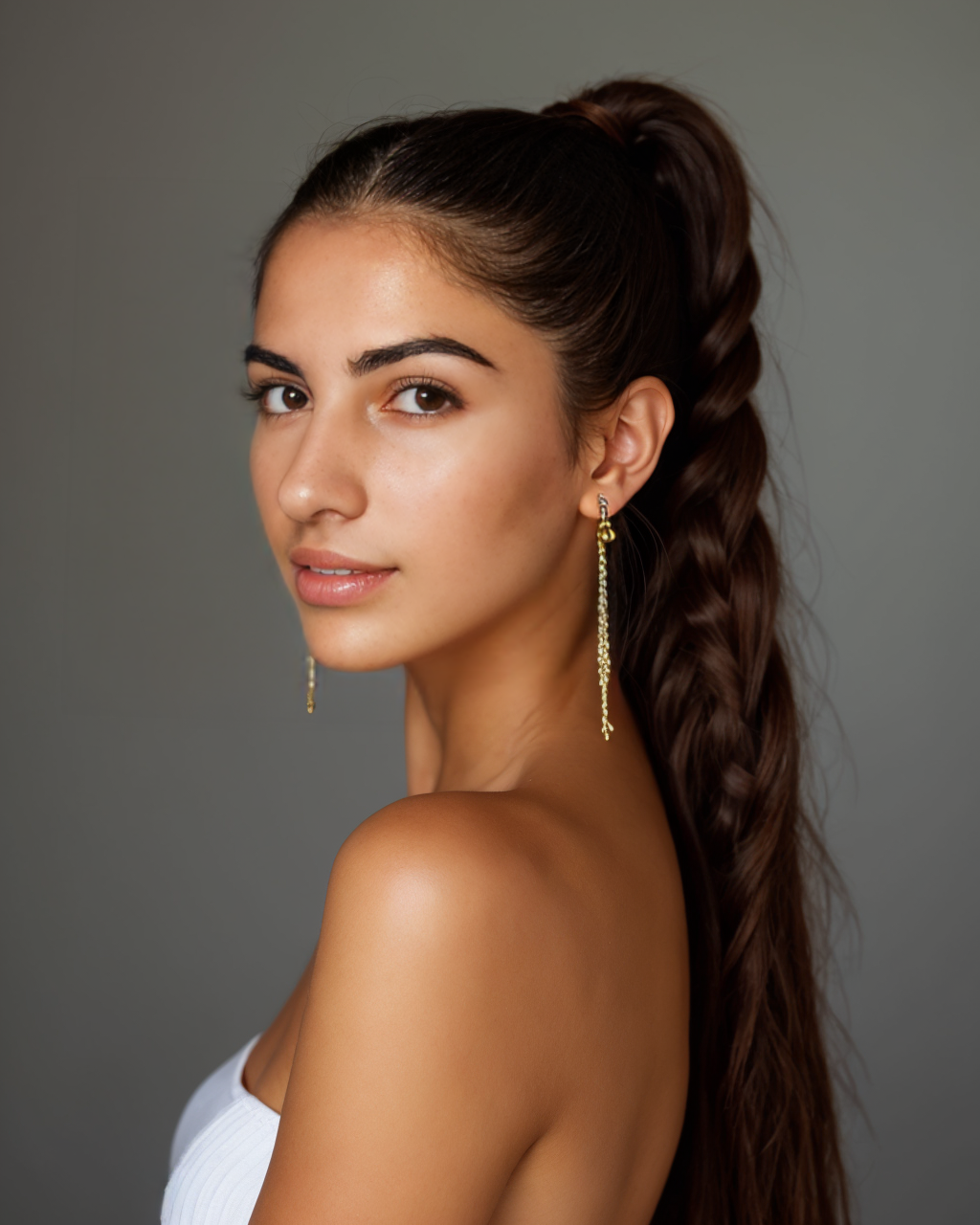 A smooth, high ponytail composed of tight box braids that glisten with a deep espresso hue. The sleekness of the style screams confidence and power, making it a go-to for a polished, sexy look. Best suited for long hair or extensions, especially for those with natural textures. Rock it at formal events, work presentations, or a chic dinner party.