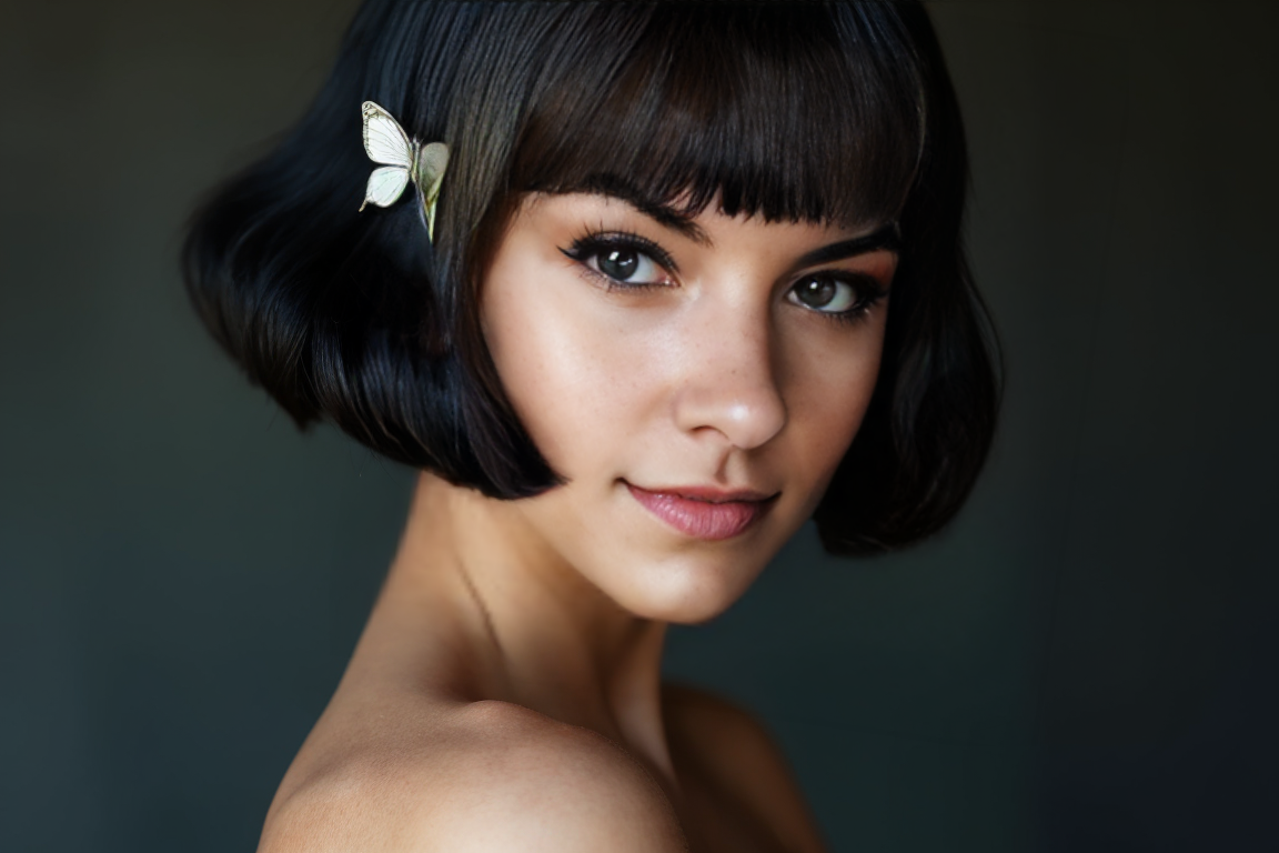 The sharp contrast of ultra-short micro bangs with a straight, angular bob oozes editorial chic. This look is daring, fashion-forward, and a little mysterious — a modern baddie with Y2K high-art influence. Best for straight hair and short to medium lengths, it’s great for fashion events, work days, or curated Instagram moments.