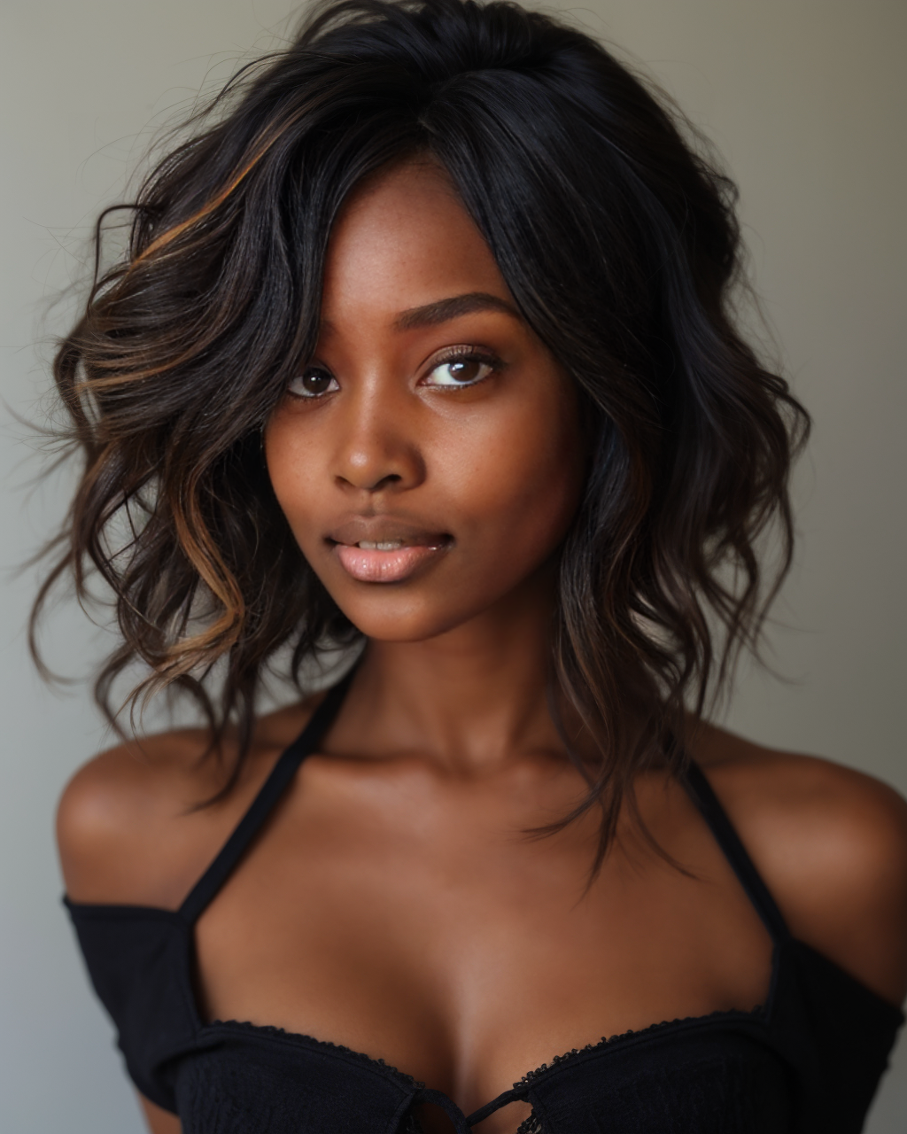 This angled bob is full of attitude and texture, styled with tousled waves and sun-catching caramel balayage. It’s the perfect fusion of structure and spontaneity. Best for short to medium hair with natural wave or straight texture. A sleek yet edgy choice for work or play.