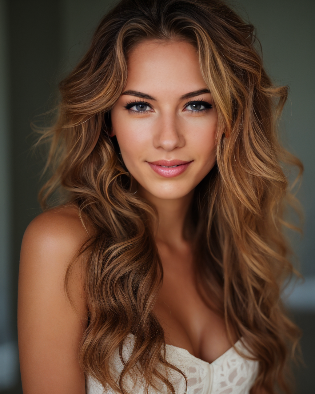 Volume meets elegance in this long, side-parted style featuring bouncy curls and chestnut balayage. It’s the ultimate glam-go-to for red carpet vibes. Designed for long curly or wavy textures, this look shines at formal events or upscale dinners. Think timeless beauty with a modern twist.