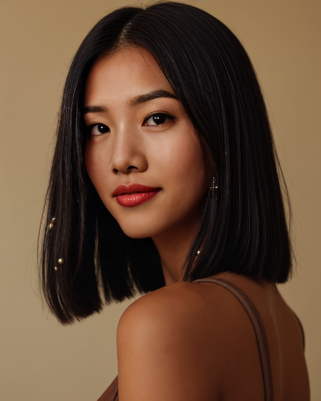 Short locs are styled into a chic backswept bob twist with minimalist gold pins adding a touch of shine. The espresso brown gloss finish gives it a luxe, polished feel. It’s a clean, modern look that works well for professional environments or minimalist fashion lovers. Perfect for those who want a low-maintenance yet stylish cut.